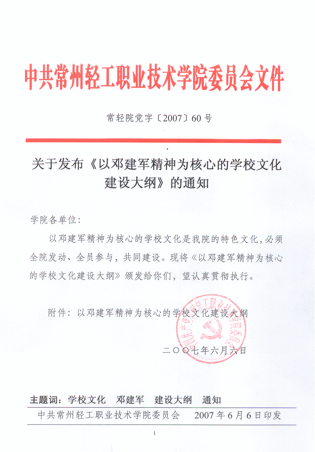第二條 以鄧建軍精神為核心的學校文化是我院的特色文化。鄧建軍精神內容是:愛崗敬業,自強不息。