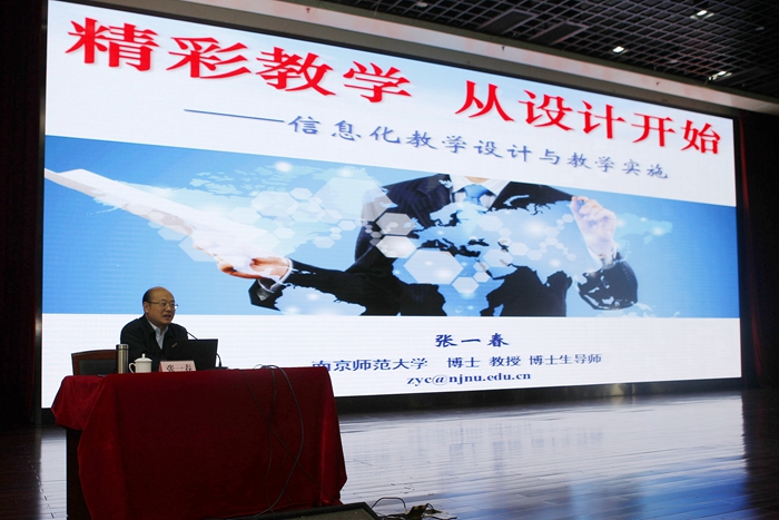 4月4日上午,我校全體教師齊聚一堂,共同聆聽南京師范大學(xué)繼續(xù)教育學(xué)院院長、博士生導(dǎo)師張一春教授題為“精彩教學(xué),從設(shè)計(jì)開始——信息化教學(xué)設(shè)計(jì)與教學(xué)實(shí)施”的講座。學(xué)校副校長蔣新萍出席并主持活動(dòng)。
