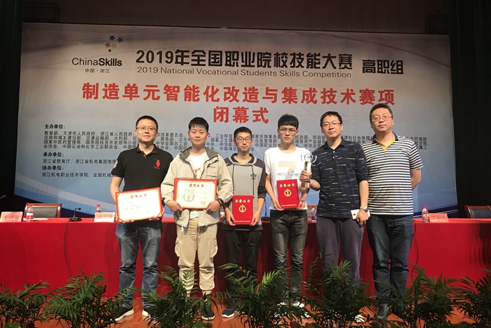 6月2日,2019年全國職業院校技能大賽高職組“制造單元智能化改造與集成技術”賽項在浙江落幕,我校代表隊勇奪本屆全國職業院校技能大賽第2個一等獎。至此我校今年4個國賽項目比賽全部結束,共獲得一等獎2項,二等獎1項,三等獎1項。