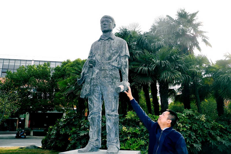 11月7日下午,張志東回母校參加智能控制學院專門為他安排的“工程師訓練營”技能導師聘任儀式。儀式結束后,他走到鄧建軍銅像前,踮起腳,用右手觸摸那青銅顏色的手——此刻,兩只“全國技術能手”終于觸碰到了一起。