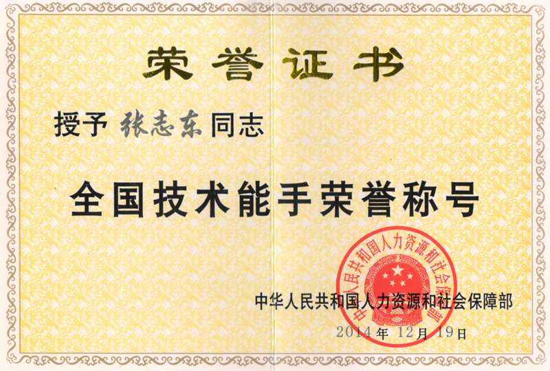說起這喜訊姍姍來遲的原因,還真有點復雜。那年12月,張志東去北京參加“2014年中國技能大賽·第六屆數控技能大賽”,與同組的徐為為一起雙雙獲得職工組“數控機床裝調維修工種”第一名,直接拿到了蓋著“中華人民共和國人力資源和社會保障部”大印的“全國技術能手”證書,同時得到通知,可以直接申報“全國五一勞動獎章”。兩人回來后將申報表一級級上報蓋章,武進高新區總工會——武進區總工會——常州市總工會——江蘇省總工會……這章蓋著蓋著就沒了下文。去年年初,武進區總工會要幫他們落實省級勞模待遇,催他們提供有關證書獎章,這下兩人傻眼了:他們從未見過證書和獎章長什么模樣。電話江蘇省人力資源和社會保障廳,人社廳再幫他們電話北京的人社部,結果是“上窮碧落下黃泉,兩處茫茫都不見”。有天上午突然接到工會電話要他們去簽字,工會辦公室桌上,全國總工會給人力資源和社會保障部的批復文件赫然在目:“經全國總工會第十六屆書記處第37次會議研究,決定授予獲得第六屆全國數控技能大賽職工組各工種決賽第一名的7位同志全國五一勞動獎章……”,落款是2015年7月10日。