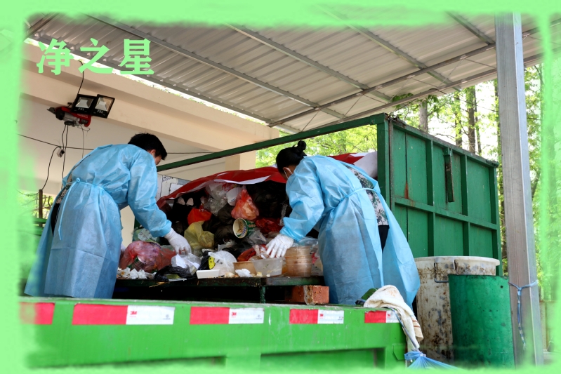封校防控期間,學生公寓區產生的垃圾逐日遞增。不斷來回拉車,每日垃圾分類處理……對于校園垃圾站的工作人員來說,是對身體和精神的雙重考驗。出入惡臭的垃圾堆,用雙手對垃圾清理、分類,他們的衣服也許沾滿了污漬,但是他們心靈之美,卻裝點了整潔的校園。汗水與塵土襯托的,是那一個個質樸的靈魂。他們是校園里的一顆顆“凈之星”。