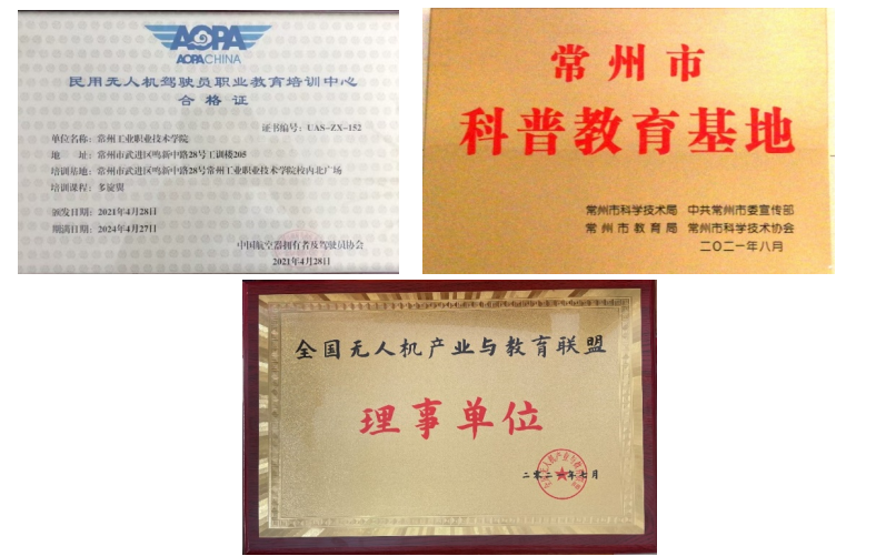 目前,學院已經獲得民用無人機駕駛員培訓點、江蘇省中小學生職業體驗中心,常州市科普基地、退役軍人無人機項目培訓基地等諸多資質。