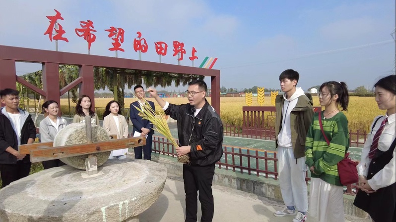 這是一堂關于“糧食安全”的實踐課。只見王風圳手拿一株水稻,用管仲以糧滅國的故事引出糧食安全的重要性,又以基辛格之論、西歐和東亞等國的糧食問題為例,運用“繩索變成繩套”的形象比喻,讓同學們深刻認識到中國人要把飯碗牢牢端在自己手中,激勵大家扣好人生的第一粒扣子,在努力奮斗中變成中國的一粒好種子。