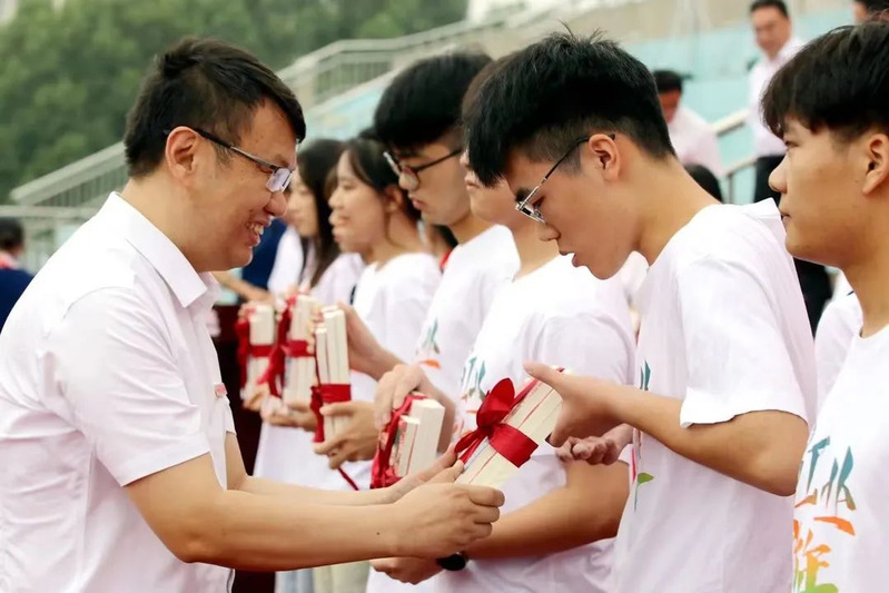 鄧建軍為新生授書《中國技工鄧建軍》和《鄧建軍的校友們(第一輯)·匠心花開》