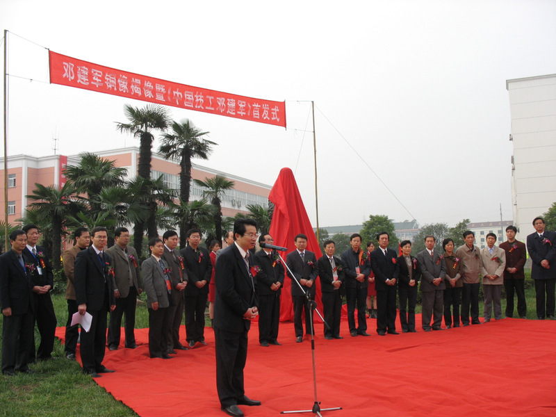 在這之前,周大農(nóng)院長痛感學校缺少亮點,提出為當時年僅37歲的杰出校友鄧建軍塑一座像,塑像將于評估的第一天請評估專家參與揭幕。鄧建軍在當時已經(jīng)是全國知名勞模了,時任黨委書記楊興華也十分重視這位畢業(yè)生榜樣。與此相關,在竺山湖幾天的頭腦風暴中,時任科技處處長袁峰一直在提一個概念——“鄧建軍精神”,大家就共同為鄧建軍精神確定了八個字:“愛崗敬業(yè),自強不息”。