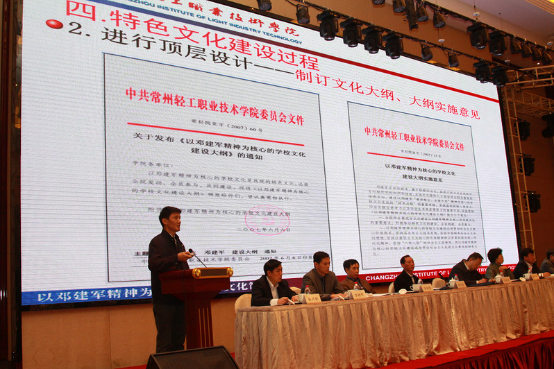 “搜索枯腸”貌似沒有結果,山重水復疑無路之時,新的思路出現(xiàn)了:我發(fā)現(xiàn)自從特色報告出爐后,很多部門尤其是二級學院,都在自覺或不自覺地開展跟特色文化有關的活動。這些具體活動或工作,學校層面根本想不到,也沒必要去設計、思考、做計劃。學校層面只需要出原則、明方向——于是我想到了擬寫學校文化建設大綱和大綱實施意見。經(jīng)過近一年的思考,《常州輕工職業(yè)技術學院以鄧建軍精神為核心的學校文化建設大綱》和大綱實施意見正式公布。大綱從鄧建軍精神引申出我們作為高職學院進行學校文化建設的三大原則:倡導自信自強自立原則,引領創(chuàng)新創(chuàng)優(yōu)創(chuàng)業(yè)原則,強化工匠精神培育原則——使全校的各項工作都能從鄧建軍精神和三大原則中尋找到結合點,為特色文化全員共建創(chuàng)造了條件。