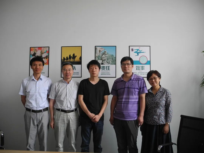 時任黨委副書記張濤(左2)帶領本文作者(左1)采訪優(yōu)秀畢業(yè)生,支持作者撰寫《鄧建軍的校友們(第一輯)·匠心花開》