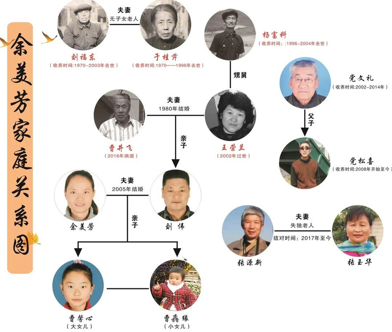 2011年,從工會轉(zhuǎn)過來一篇稿件,是模具系一位叫余美芳的輔導員撰寫的自述稿,敘述她的家庭從她公公開始,幾十年來先后贍養(yǎng)了五位外姓孤寡老人。黨委書記楊興華知曉后十分重視,讓工會轉(zhuǎn)到宣傳部,讓我花點功夫。看到這樣的重大題材,我也是如獲至寶,于是改寫成了一篇通訊《五姓之家的敬老演義》。為了讓這個復雜家庭的人物關系更加清晰,那天上午我把余美芳喊到辦公室,讓宣傳部一位老師在余美芳的指導下畫出了家庭關系圖。