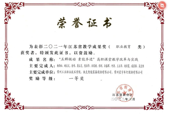 有榮獲江蘇省高校“青藍(lán)工程”優(yōu)秀教學(xué)團(tuán)隊(duì)稱號(hào)的智能控制技術(shù)教學(xué)團(tuán)隊(duì),團(tuán)隊(duì)獲得2022年國(guó)家教學(xué)成果獎(jiǎng)二等獎(jiǎng)、2021年江蘇省教學(xué)成果獎(jiǎng)一等獎(jiǎng)。