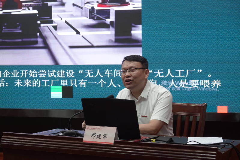 鄧建軍院長結合自身30多年在生產一線參與500多個技術改造項目、攻克約50個重大技術難題,從一名普通的技術工人成長為行業(yè)技術領跑者的工作經歷,為同學們介紹了從無人工廠到未來工廠、智能工廠概念和發(fā)展歷程、智能制造的關鍵應用技術,以及智能車間實施等情況。他對同學們提出了四點希望和建議:一是希望能堅定信心,筑夢未來工匠,成為大有作為的時代青年;二是希望能保持恒心,培養(yǎng)奮斗精神,做堅持知行合一的向上青年;三是希望能勇于創(chuàng)新,練就過硬本領,做矢志全面發(fā)展的有為青年;四是希望能具有國際化視野,做新質生產力的推動者,為中國制造趕超世界先進水平不斷努力。