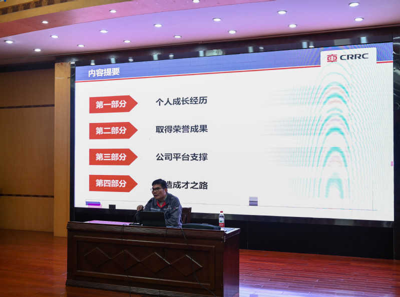講座中,蔣宇鋒以“人貴專精,成于勤樂”為題,結合自身工作經歷、成長過程,用樸實的語言、親身的感悟為同學們講述了自己從一名普通的職工成長為高級工程師、中車首席技能專家的蛻變之路,詮釋了他心中的工匠情懷和勞模精神。他勉勵同學們要持續學習與自我提升,用樂觀的態度面對各種挑戰,逐步突破目標高地,堅守一份匠情、執著一種匠藝,打造一個與眾不同的自己,用智慧和汗水書寫出屬于自己的精彩匠果。