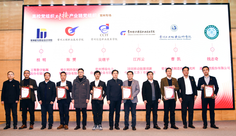 會上發布了常州市“強基固鏈·校地融合”戰略合作倡議,推出了《在常高校助力“1028”產業體系優勢平臺(院系)索引》。與會領導為江蘇高校“雙帶頭人”教師黨支部書記“強國行”專項行動——常州賦能站揭牌。