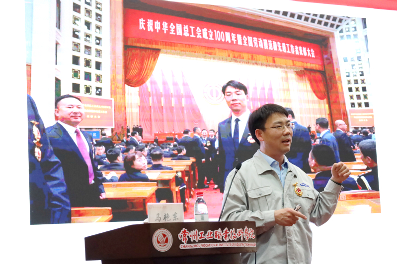 宣講會上,馬艷東回憶了4月28日在北京參加慶祝中華全國總工會成立100周年暨全國勞動模范和先進(jìn)工作者表彰大會的經(jīng)過,談了自己的獲獎感言:“我胸前的這些榮譽(yù),不是憑空得來的,每一枚獎?wù)卤澈螅际菙?shù)不清的汗水和堅持。榮譽(yù)加身不是終點(diǎn),而是新的起點(diǎn)。”“咱們學(xué)校向來人才輩出,從這里走出的全國勞模不止我一個,還有師兄鄧建軍、吳宏勝,這說明只要肯下苦功夫,機(jī)會永遠(yuǎn)會青睞有準(zhǔn)備的人。”他鼓勵同學(xué)們,每一滴汗水都有回響,每一份堅持都是未來的饋贈。不要被“不可能”嚇退,更不要被“做不到”定義。“只要足夠努力,在座的各位同學(xué)都可以當(dāng)勞模!”