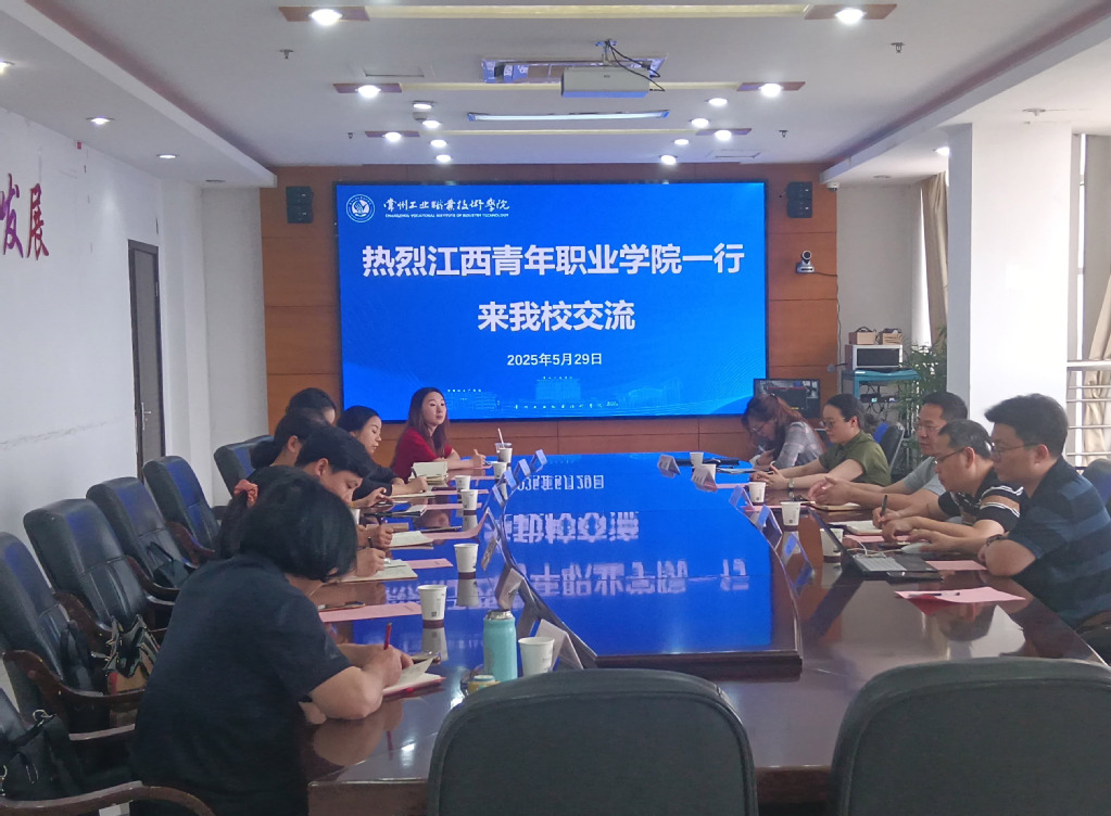 5月29日,江西青年職業(yè)學(xué)院黨委委員、教務(wù)處處長戴彩云一行來校調(diào)研交流。教務(wù)處處長蔣正炎接待來賓并主持會議。