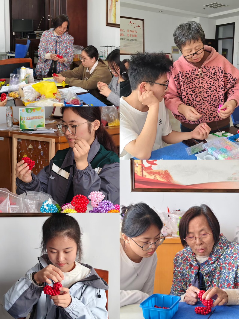 學院關工委持續深化“五老”育人機制:一方面,邀請退休老教師朱文霞、巢桂芳、周英擔任中國串珠技藝工坊的社團授課老師,十幾年如一日地嚴把社團活動“政治關”,確保思想引領不偏航。另一方面,組織老教師帶隊深入社區、鄉村,開展愛心助童、助老,愛心義賣助力困難學子,非遺文化宣講等公益服務。