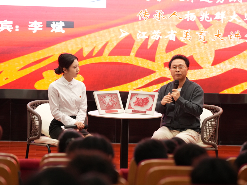 隨后,國(guó)家級(jí)非遺“金壇刻紙”代表性傳承人楊兆群大師的故事成為團(tuán)課的核心篇章。2010年起,楊兆群自籌資金踏上尋訪之路,十余年間走遍各地,記錄全國(guó)70多位高齡民間剪紙藝人的技藝與故事。如今,楊兆群已收藏清代至今的剪紙精品、文獻(xiàn)超5萬(wàn)件,2018年還因堅(jiān)守刻紙文化入選“中國(guó)好人榜”,獲“敬業(yè)奉獻(xiàn)好人”稱號(hào)。2019年,楊兆群與我校藝術(shù)創(chuàng)意學(xué)院攜手成立大師工作室,受聘為客座教授,合作構(gòu)建起“保護(hù)—傳承—傳播”三位一體的非遺振興路徑,讓非遺傳承走進(jìn)校園。
