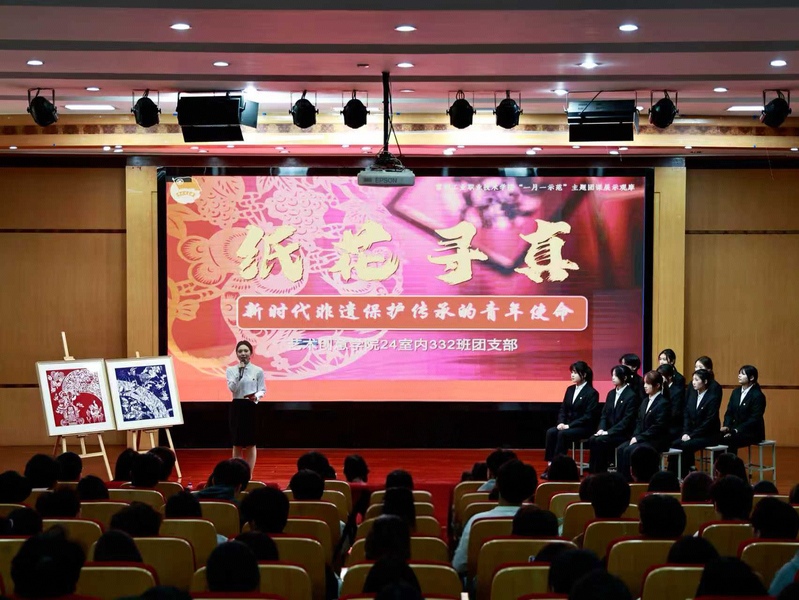 10月29日,藝術(shù)創(chuàng)意學(xué)院“一月一示范”主題團(tuán)課如期舉行。校團(tuán)委副書記涂艷群,各二級(jí)學(xué)院分團(tuán)委書記以及全校團(tuán)支部書記、新團(tuán)員代表齊聚一堂,共同聆聽(tīng)“紙花尋真——新時(shí)代非遺保護(hù)傳承的青年使命”主題團(tuán)課,在金壇刻紙的匠心傳承與創(chuàng)新實(shí)踐中,探尋青年一代的文化擔(dān)當(dāng)與傳承之道。