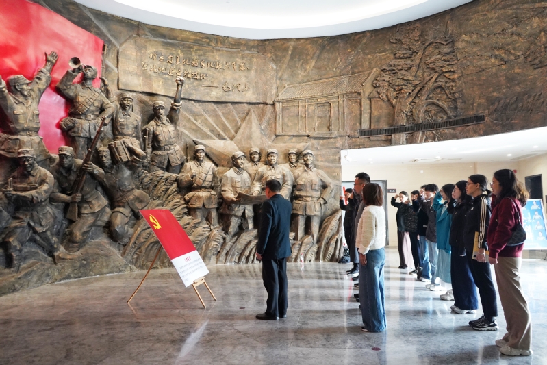 在紀念館展廳,大家依次參觀了“抗擊日寇 浴血江南”“運籌帷幄 決勝千里”“鐵軍精神 永放光芒”等主題展廳。通過泛黃的電文、斑駁的步槍、生動的沙盤,重溫了1938至1940年間陳毅、粟裕等老一輩革命家運籌帷幄、決勝江南的崢嶸歲月。在莊嚴的黨旗前,機關第十一黨支部書記彭士華帶領全體黨員重溫入黨誓詞,鏗鏘誓言回蕩在指揮部舊址上空。