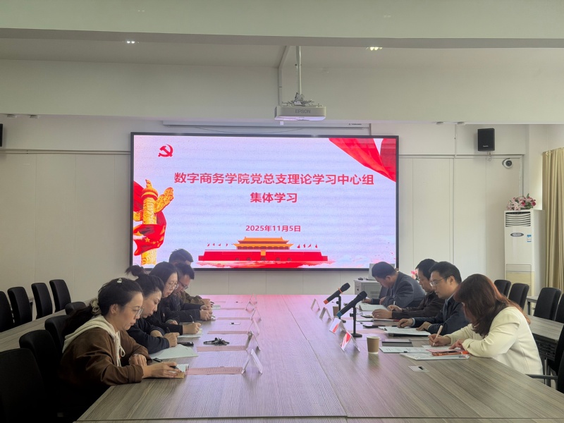 11月5日,數字商務學院黨總支召開理論學習中心組集體學習會議,專題傳達學習黨的二十屆四中全會精神。黨委委員、副校長蔣正炎到會巡學旁聽并作點評發言。會議由數字商務學院黨總支書記馬軍主持。