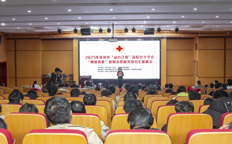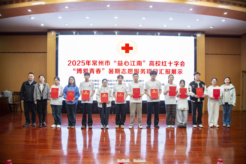 11月6日,2025年常州市“益心江南”高校紅十字會“博愛青春”暑期志愿服務項目總結展示活動在我校舉行。常州市紅十字會黨組書記、常務副會長戴亞東,我校黨委副書記吳麗云,江南農村商業銀行工會副主席殷錫峰,常州市紅十字會黨組成員、副會長鄭躍進,市委社工部、市教育局、團市委、市紅會等相關處室負責人,以及各高校紅十字會項目負責老師、大學生志愿者、學生代表共200余人參加活動。